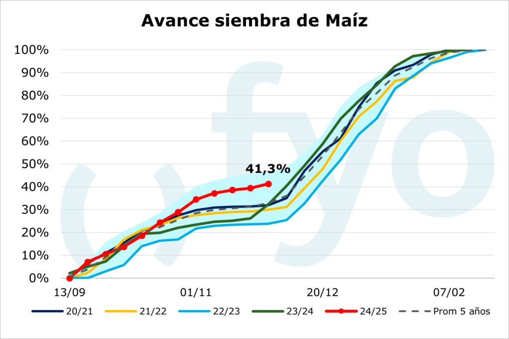 - La siembra avanzó 1,9 p.p., alcanzando al 41,3% de la superficie estimada.