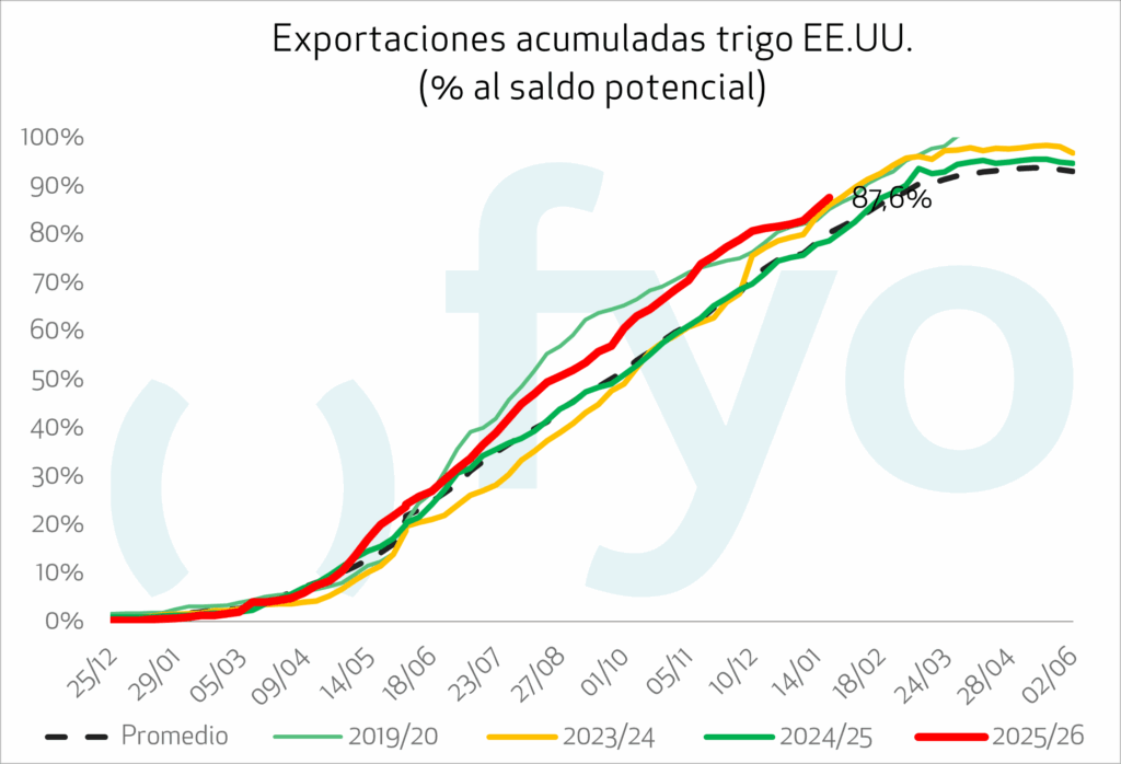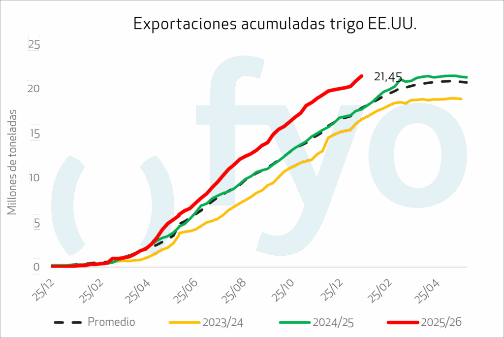 Las ventas de trigo alcanzaron las 558.000 toneladas, situándose en el límite superior de las expectativas del mercado de 275.000 a 600.000 toneladas. Durante las últimas cuatro semanas, las ventas promediaron 361.966 toneladas, frente a las 302.092 toneladas del mismo periodo del año anterior.