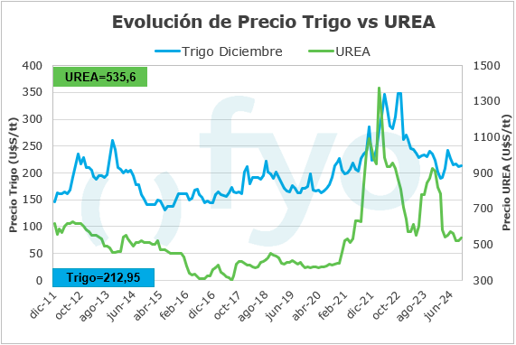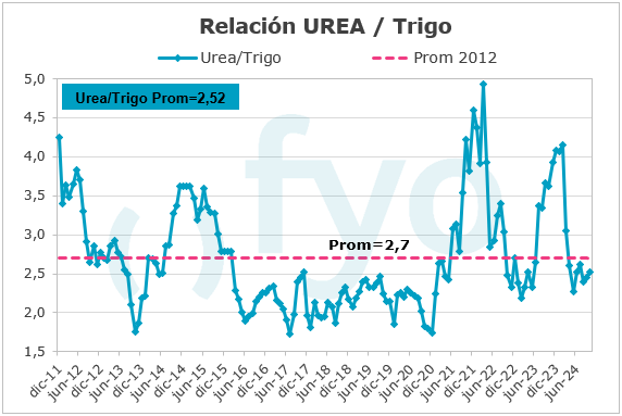 Sobre los fertilizantes, durante la última semana de octubre, hubo un mayor volumen de negocios por la aplicación de fertilizantes para la siembra de soja (fósforo) y algo de refertilización de trigo (nitrógeno). Respecto a los fosfatados, se esperaba que la oferta estuviera ajustada, pero no resultó ser así debido a que la demanda para la siembra de maíz temprano fue menor a lo esperado; por lo tanto, están vendiendo casi a costos de importación. En cuanto a la urea, el mercado sigue muy ofrecido, con el mercado externo también presionando a la baja. Se espera que a finales de noviembre las ventas se detengan y que los precios internos comiencen a descontar la quita del impuesto PAIS.
