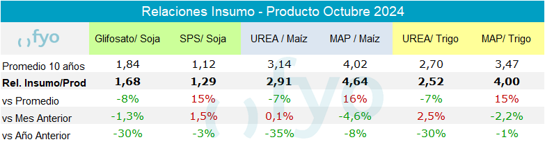 En el mes de octubre, las relaciones insumo-producto tuvieron un comportamiento dispar, aunque sin importantes variaciones. Los precios a cosecha, en promedio, fueron ligeramente más altos respecto al mes de septiembre.