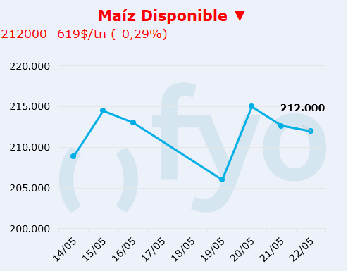 - Por maíz disponible puesto en Rosario se pagaron $ 212.000, con un contractual en USD 183 y 15/6-15/7 en USD 180