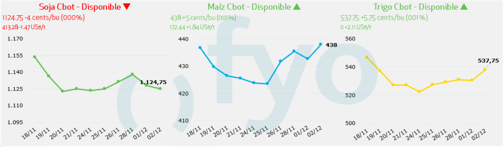 - Los futuros de la soja en Chicago cierran la jornada con bajas, presionados por las condiciones climáticas favorables en Sudamérica y la ausencia de nuevas ventas de exportación de EE.UU.