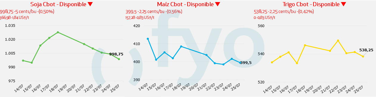 - Por maíz, la descarga corta se pagó USD 180, sin lograr traccionar volumen de parte de la oferta.