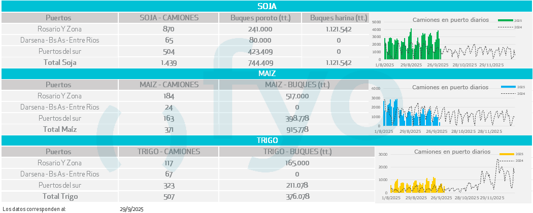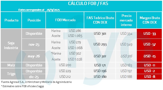 - La demanda china por soja estadounidense se mantiene ausente. Operadores reportaron el registro de 40 cargamentos de soja argentina para exportación en noviembre y diciembre, con China como destino principal.