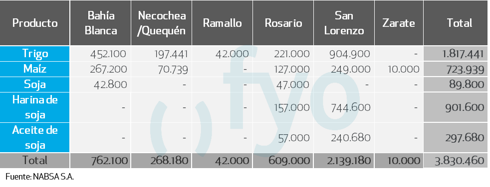CARGAS DE BUQUES PROGRAMADAS POR PRODUCTO Y POR PUERTO DEL 29 DE DICIEMBRE: