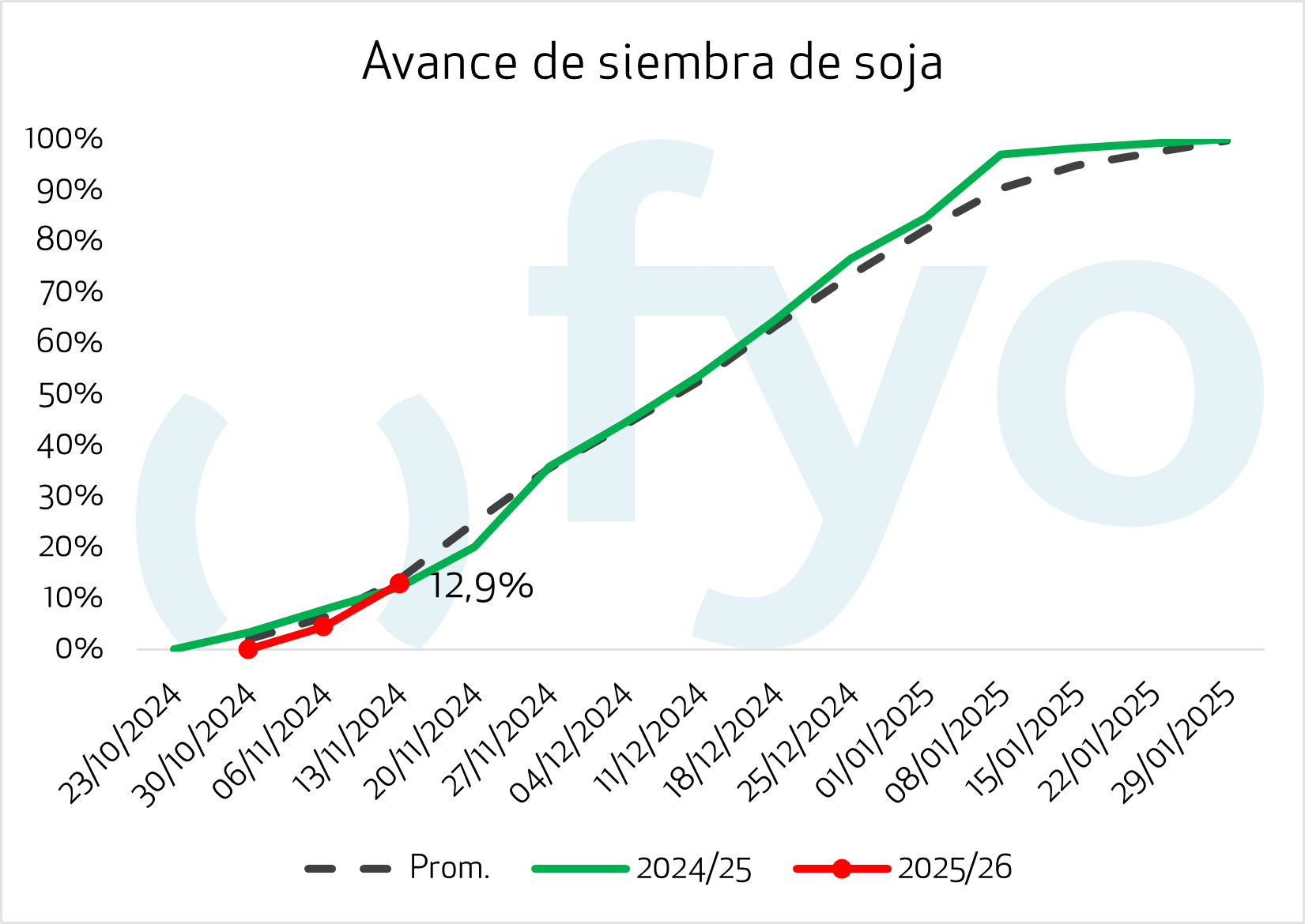 - El 18,6% de la soja de primera ya fue implantada, con foco en ambos núcleos y el sur de Córdoba.