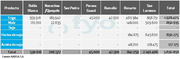 CARGAS DE BUQUES PROGRAMADAS POR PRODUCTO Y POR PUERTO DEL 26 DE ENERO: