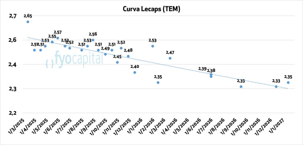 En el marco de los movimientos de estos días de la curva de renta fija, optamos por tomar una posición preferentemente conservadora. Por eso elegimos el tramo más corto y en especial en las lecaps más líquidas, hacia fines de marzo.