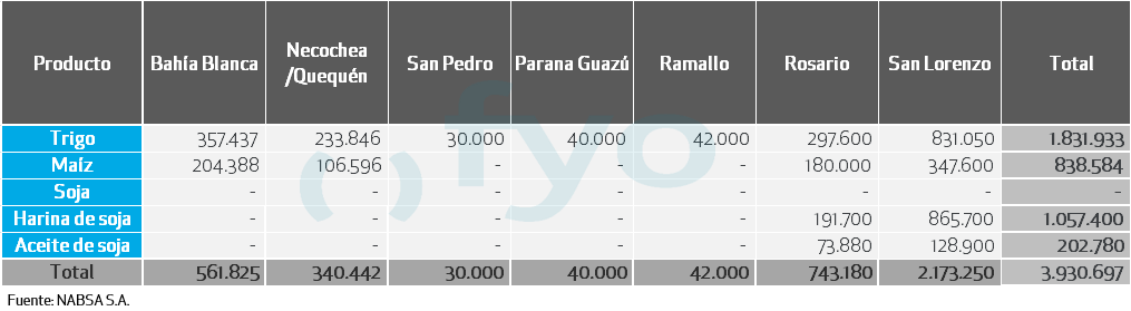CARGAS DE BUQUES PROGRAMADAS POR PRODUCTO Y POR PUERTO DEL 12 DE ENERO: